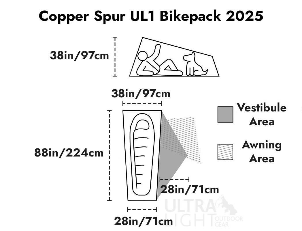 Copper Spur UL1 Bikepack Tent Weight: 000g, Packed Size: 38 x 13cm