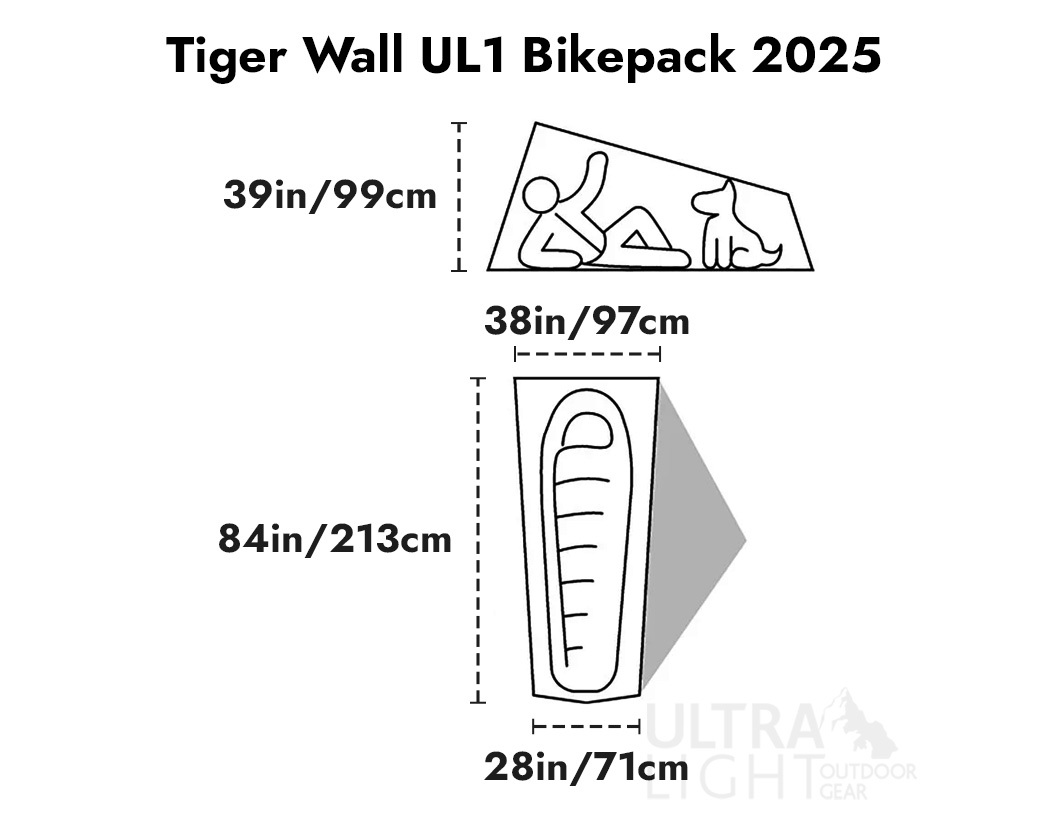 Tiger Wall UL1 Bikepack Tent Weight: 000g, Packed Size: 38 x 13cm