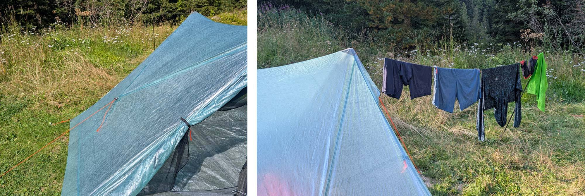 The DCF fabric is unbelievably waterproof, so rain gets shrugged off regardless of how heavy. That combined with the waterproof YKK zippers for the vestibule doors, makes the Unbound 2 a great wet-weather tent.