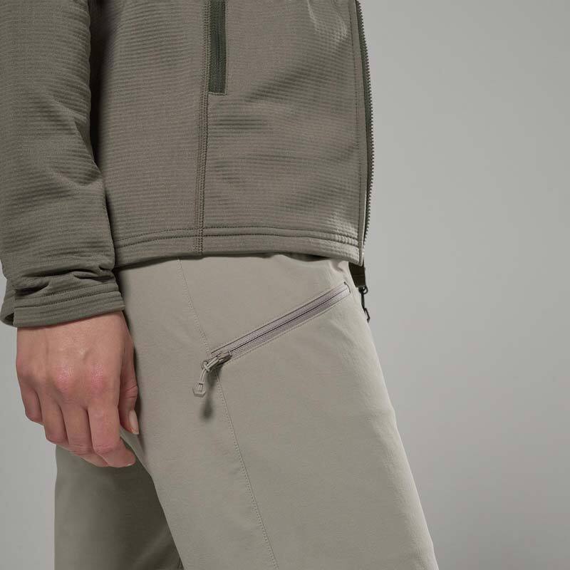 Secure thigh pocket positioned for ease of movement and securing essential items with YKK NATULON® recycled zip.