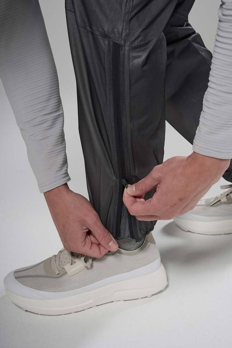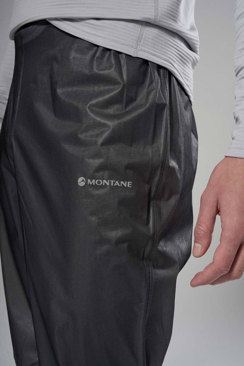 Extremely lightweight and packable waterproof pants for fast and light mountain adventures.