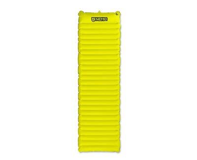 We stock the key ranges of Nemo sleeping mats, find out which they are and what they do here. — Improving on our original, best-selling Tensor line, Tensor™ Trail offers versatile warmth for three-season adventures where weight is the top priority. Designed to take you from spring to fall, it keeps nights restful and packs up light. The pad’s interior features NEMO’s proprietary Spaceframe™ baffle design, which utilizes low-stretch fabric trusses to create stable support and offer just the right amount of give — all while avoiding any wobbly waterbed feeling. Inside each baffle is a suspended layer of ultra-thin, metallised Thermal Mirror™ film, which efficiently reflects body heat and contributes to the pad’s overall 2.8 R-value.
