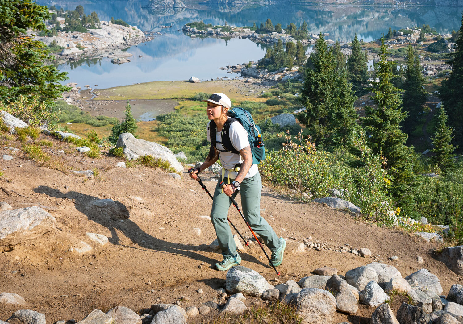 The Trail Vista trekking poles are an all-terrain option that excels on weekend jaunts or multi-day backpacks. They pack down small for easy travel on international trails and come with removable snow baskets, allowing for year-round hiking.