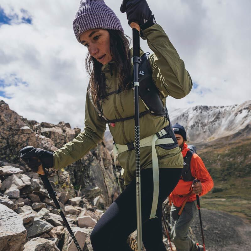 Black Diamond’s trekking poles are thoughtfully designed to provide the maximum amount of stability and comfort while users explore. Built with durable, lightweight materials, they are ready to assist on the next adventure, whether on or off the trail. To ensure the best possible fit, many of the trekking poles feature FlickLock technology. FlickLock is a secure hiking pole adjustment mechanism that delivers a reliable, strong clamping force while allowing for easy pole length adjustments. Interchangeable rubber and carbide tech tips enable users to adapt based on the type of terrain encountered. The proprietary comfort grips work to reduce hand fatigue and enhance overall comfort.